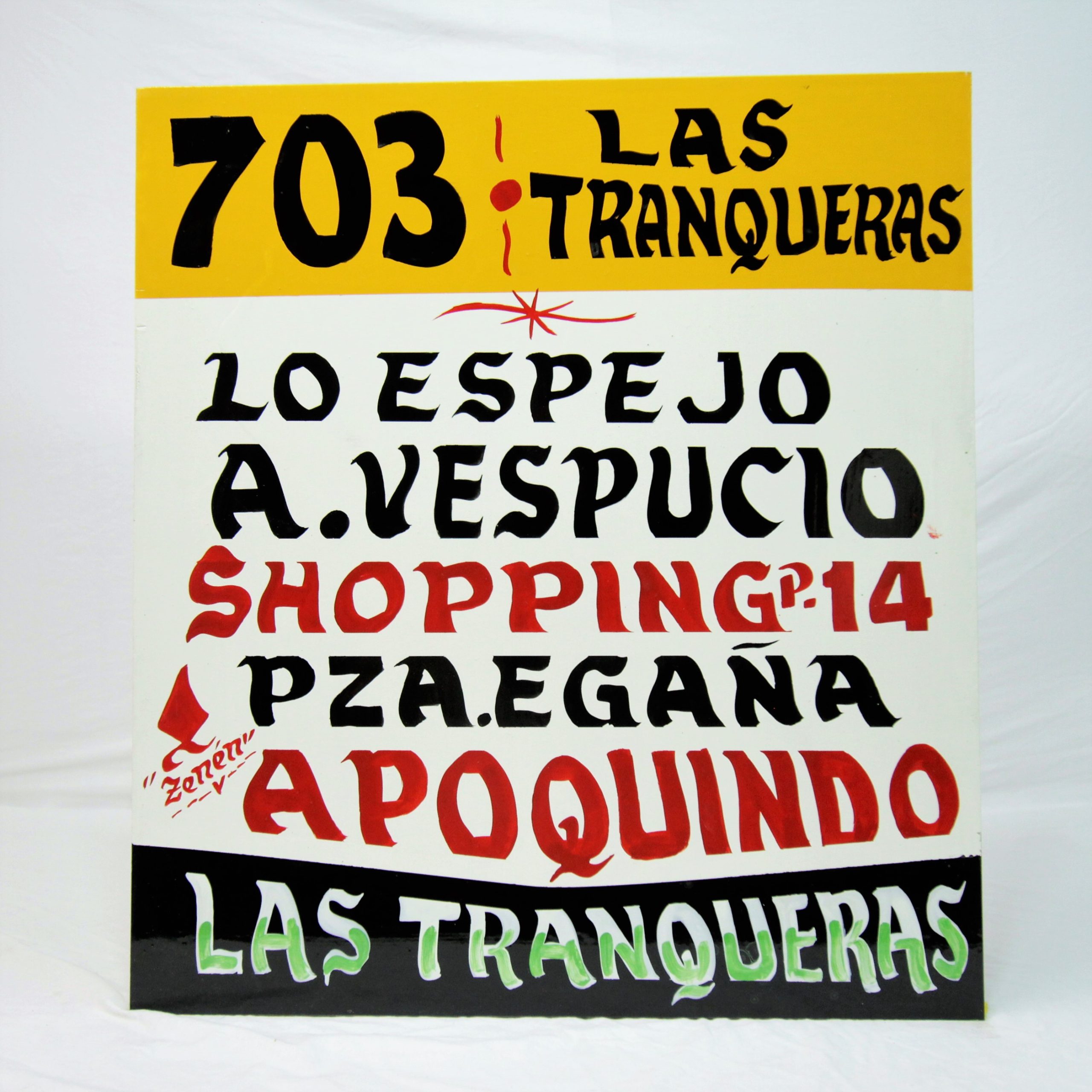 Aunque las micros amarillas dejaron de circular, su arte sigue recorriendo calles y recuerdos. En esta muestra, el maestro —patrimonio vivo de la comuna de San Joaquín y figura cultural del barrio Franklin— presenta más de 300 carteles originales, piezas que guiaron recorridos tan diversos como Tobalaba, Renca, Maipú o Puente Alto.