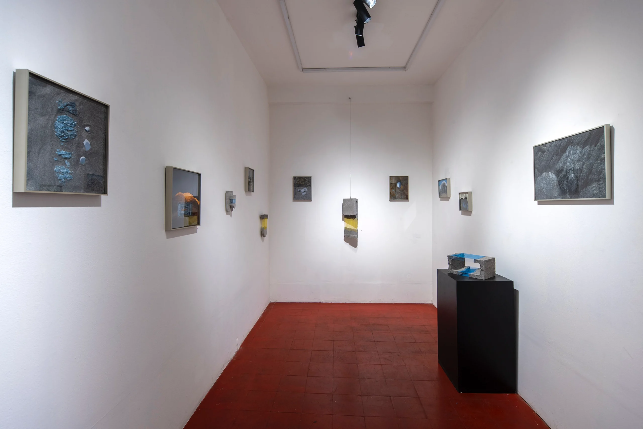 El trabajo de Emilio Fuentes nace a partir de la exploración de terrenos como la fotografía, el volumen y la intervención de estructuras tanto naturales como antrópicas, donde el hombre juega parte importante en su modificación. Sus obras se crean a partir de la relación de materiales de distintos orígenes, tanto naturales como artificiales, de modo que logra crear representaciones, reinterpretaciones y reflexiones visuales en torno a sus objetos, acompañado de la observación de fenómenos naturales. El concepto de tiempo geológico toma importancia en el trabajo que se exhibe en esta muestra, pues trae consigo la creación de rocas y minerales que forman un vínculo entre materia orgánica y lo antrópico, intervenido por el ser humano.
